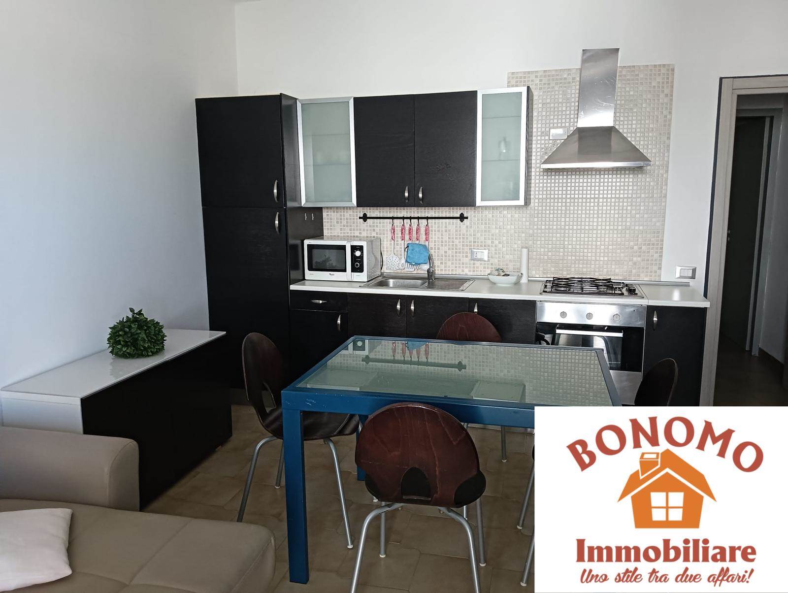L'agenzia Bonomo Immobiliare propone in affitto un grazioso appartamento posto al 1°piano di circa 55mq. L'immobile è composto da: cucina/soggiorno, grande camera da letto, disimpegno e bagno compreso di lavanderia.